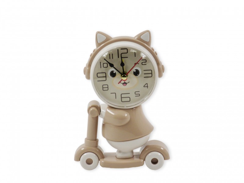 Barna cica rolleren +hegyező ébresztőóra(07049)