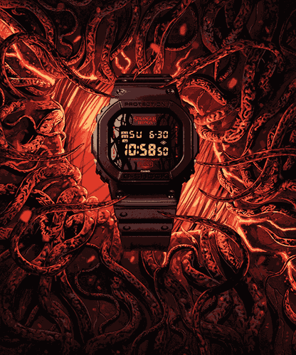 Kosárba teszemA számlap mintázata indás / szőlővesszős grafika — utalás a sorozat világára és a „Upside Down” dimenzióra.