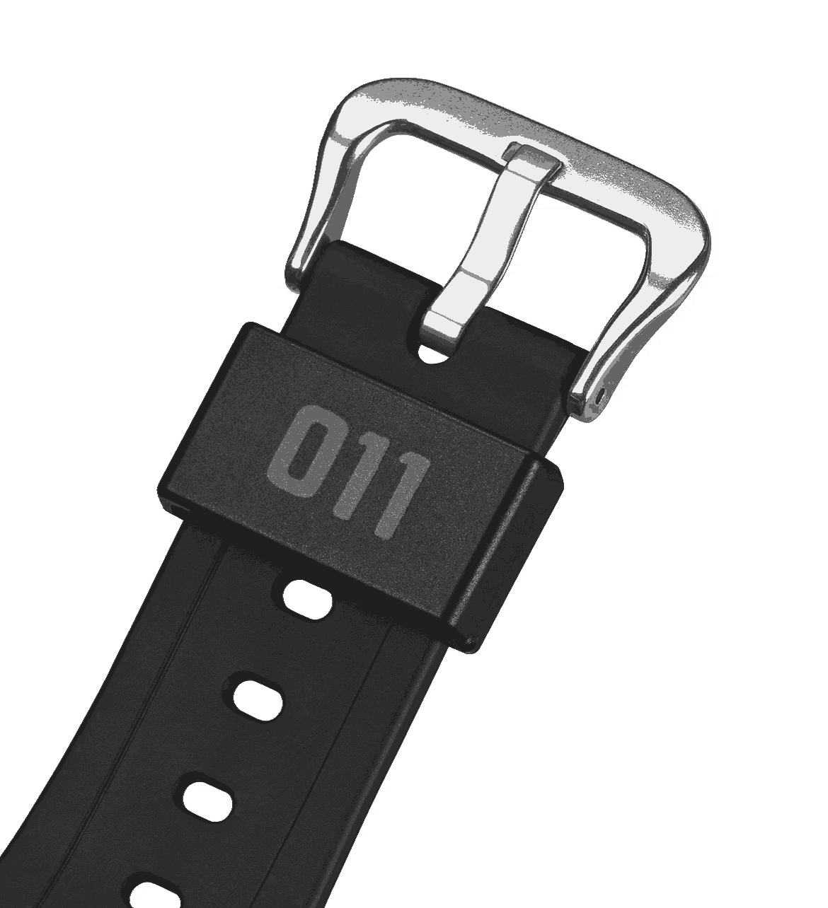 A szíj hurkolóján az „011” jelzés található — tisztelgés a sorozat főhőse előtt.
