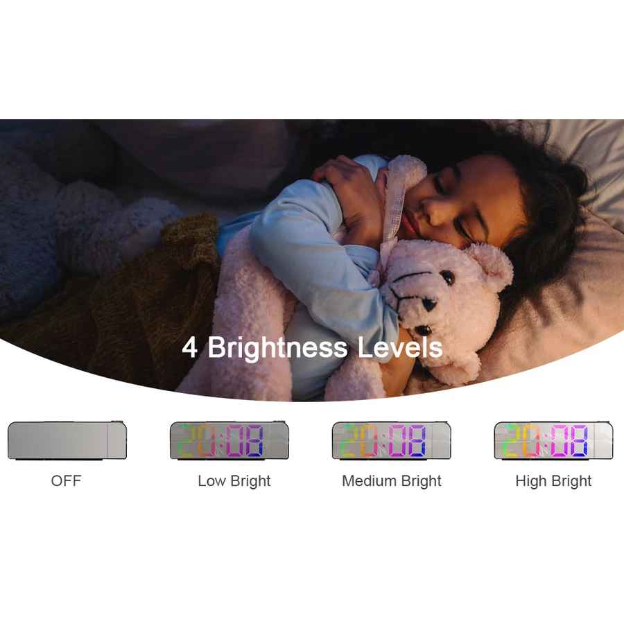 Az ébresztőóra 3 fényerőszinttel rendelkezik, amelyek állíthatók, kiválaszthatja a kényelmes fényerőt. Bekapcsolhatja az éjszakai üzemmódot is, ahol a kijelző gyengén megvilágított állapotba kerül, és az éjszakai üzemmód kezdési és befejezési időpontját életstílusának megfelelően állíthatja be.
