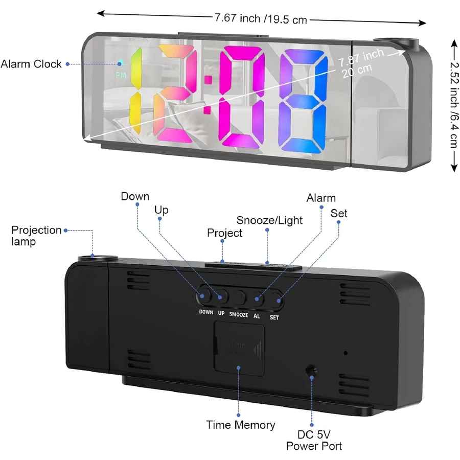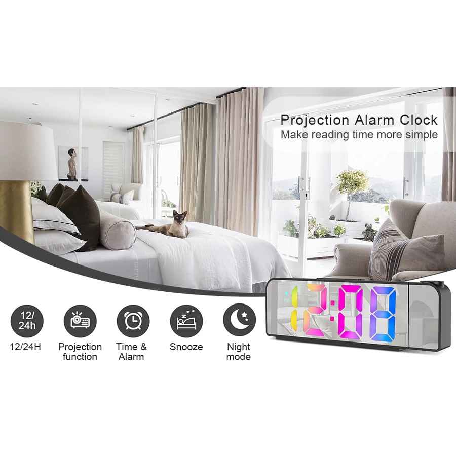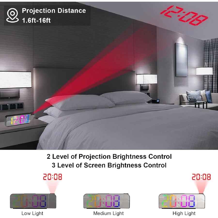 A projektor 180°-os állítási szöggel készült, és az optimális vetítési távolság 1,5-2,5 m. Az idő kivetíthető a falra vagy a mennyezetre, ideális a hálószobában és a nappaliban való használatra.